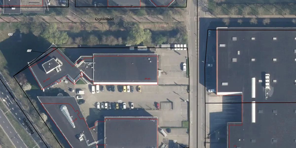Het perceel waarop Algolweg 9-A staat heeft een oppervlakte van 7410 m². Dit is een zeer groot perceel. De perceeloppervlakte wordt geregistreerd door het Kadaster. Gedetailleerde informatie over de maten van dit perceel kunt u vinden in het rapport Kadastrale kaart met maatvoering van Algolweg 9-A.