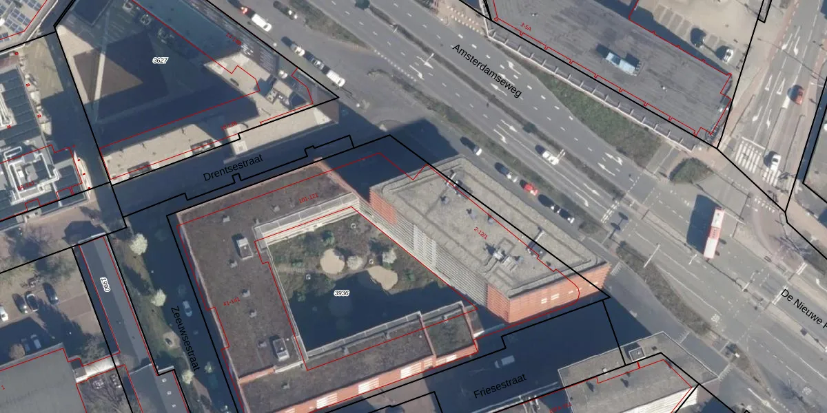 Het perceel waarop het adres ligt is AMF00-H-3936. De afkorting 'AMF00' staat voor kadastrale gemeente Amersfoort. Het perceel is met 4368 m² relatief groot. Het gemiddelde ligt in de kadastrale gemeente Amersfoort op 959,94 m². De grootste perceeloppervlakte in de kadastrale gemeente is 1,12 km². De kleinste oppervlakte bedraagt 0 m². Op het perceel liggen in totaal 124 adressen. In de Basisregistratie Kadaster (BRK) werden de grenzen van het perceel geregistreerd op 10-02-2010.