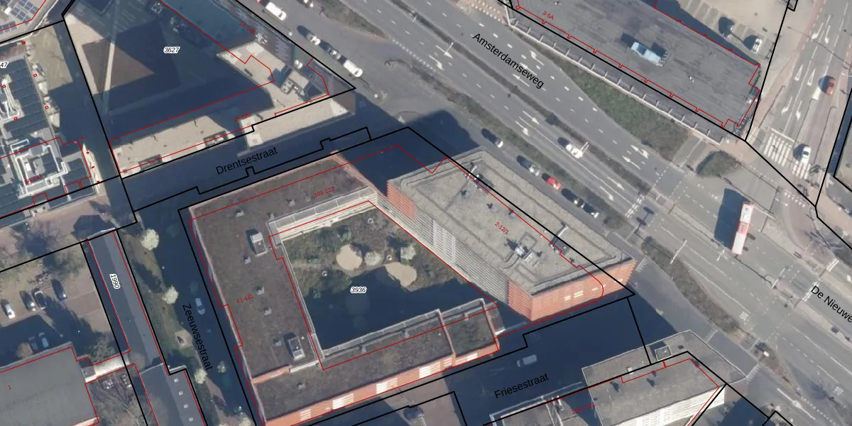 Het perceel waarop Amsterdamseweg 12-F staat heeft een oppervlakte van 4368 m². Dit is een zeer groot perceel. De perceeloppervlakte wordt geregistreerd door het Kadaster. Gedetailleerde informatie over de maten van dit perceel kunt u vinden in het rapport Kadastrale kaart met maatvoering van Amsterdamseweg 12-F.