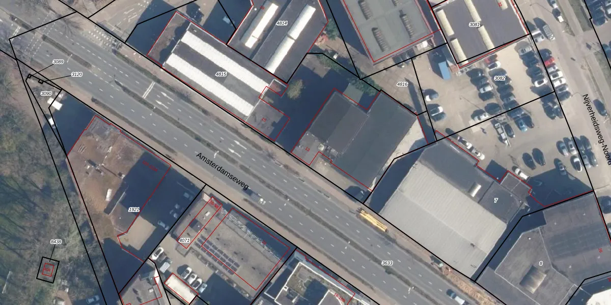 Amsterdamseweg 13 is gelegen op kadastraal perceel AMF00H4815. Deze kadastrale aanduiding is uniek en wordt gebruikt door het Kadaster om eigendomsrechten en andere zakelijke rechten vast te leggen. Het perceel maakt onderdeel uit van de kadastrale gemeente Amersfoort.