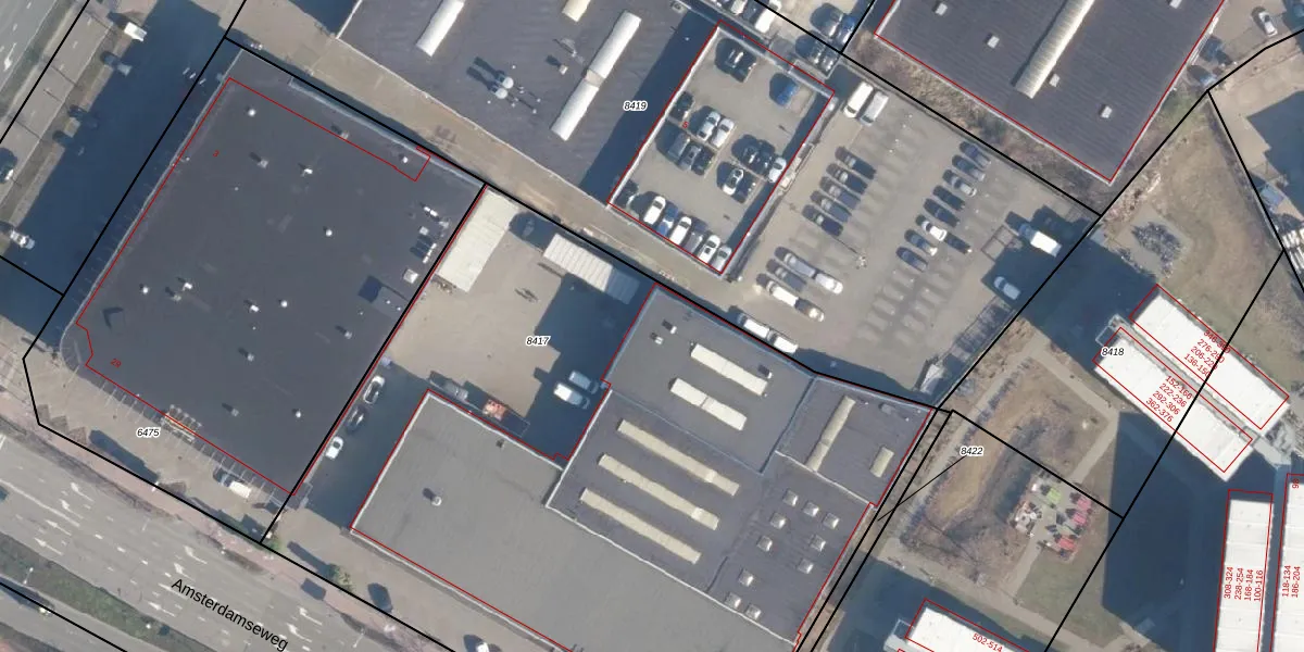 Amsterdamseweg 25 is gelegen op kadastraal perceel AMF00D8417. Deze kadastrale aanduiding is uniek en wordt gebruikt door het Kadaster om eigendomsrechten en andere zakelijke rechten vast te leggen. Het perceel maakt onderdeel uit van de kadastrale gemeente Amersfoort.