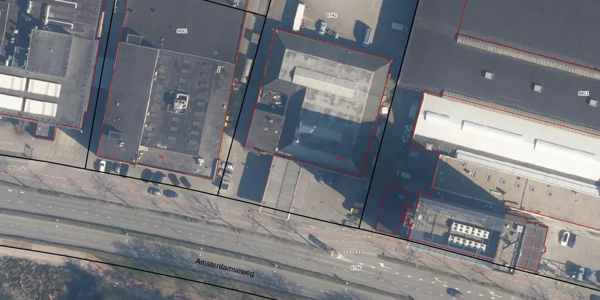 Het perceel waarop Amsterdamseweg 55-A staat heeft een oppervlakte van 6008 m². Dit is een zeer groot perceel. De perceeloppervlakte wordt geregistreerd door het Kadaster. Gedetailleerde informatie over de maten van dit perceel kunt u vinden in het rapport Kadastrale kaart met maatvoering van Amsterdamseweg 55-A.