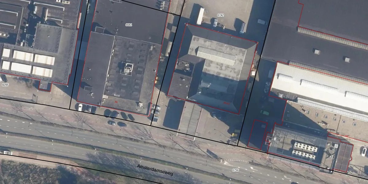 Het perceel waarop Amsterdamseweg 57 staat heeft een oppervlakte van 6008 m². Dit is een zeer groot perceel. De perceeloppervlakte wordt geregistreerd door het Kadaster. Gedetailleerde informatie over de maten van dit perceel kunt u vinden in het rapport Kadastrale kaart met maatvoering van Amsterdamseweg 57.