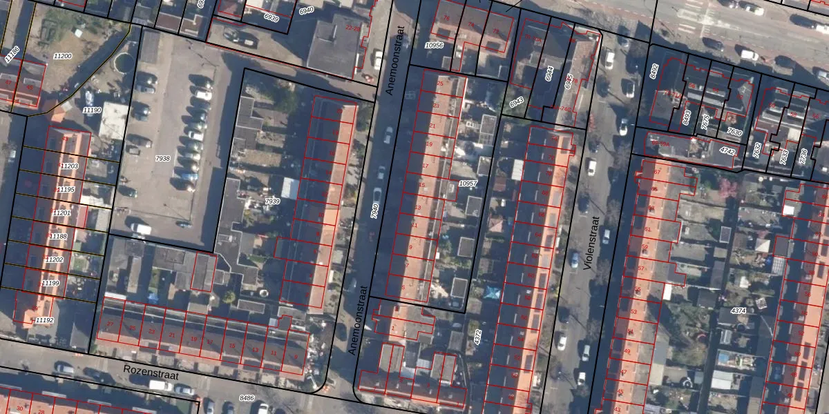 Het perceel waarop Anemoonstraat 13 staat heeft een oppervlakte van 1368 m². Dit is een zeer groot perceel. De perceeloppervlakte wordt geregistreerd door het Kadaster. Gedetailleerde informatie over de maten van dit perceel kunt u vinden in het rapport Kadastrale kaart met maatvoering van Anemoonstraat 13.