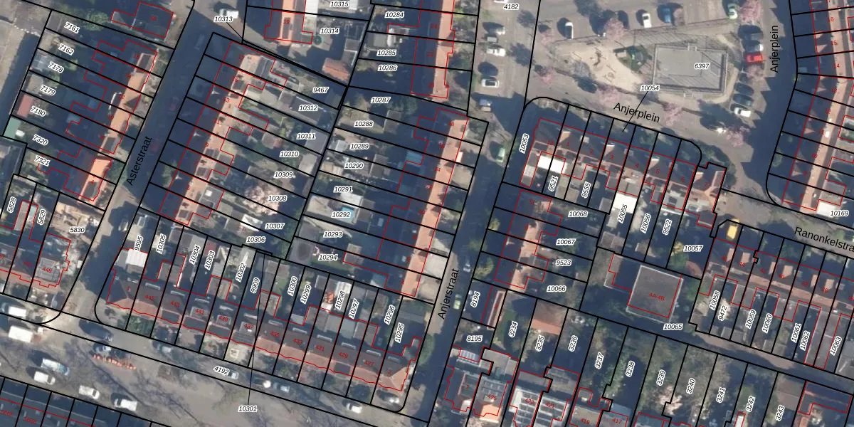 Anjerstraat 10 is gelegen op kadastraal perceel AMF00D10291. Deze kadastrale aanduiding is uniek en wordt gebruikt door het Kadaster om eigendomsrechten en andere zakelijke rechten vast te leggen. Het perceel maakt onderdeel uit van de kadastrale gemeente Amersfoort.