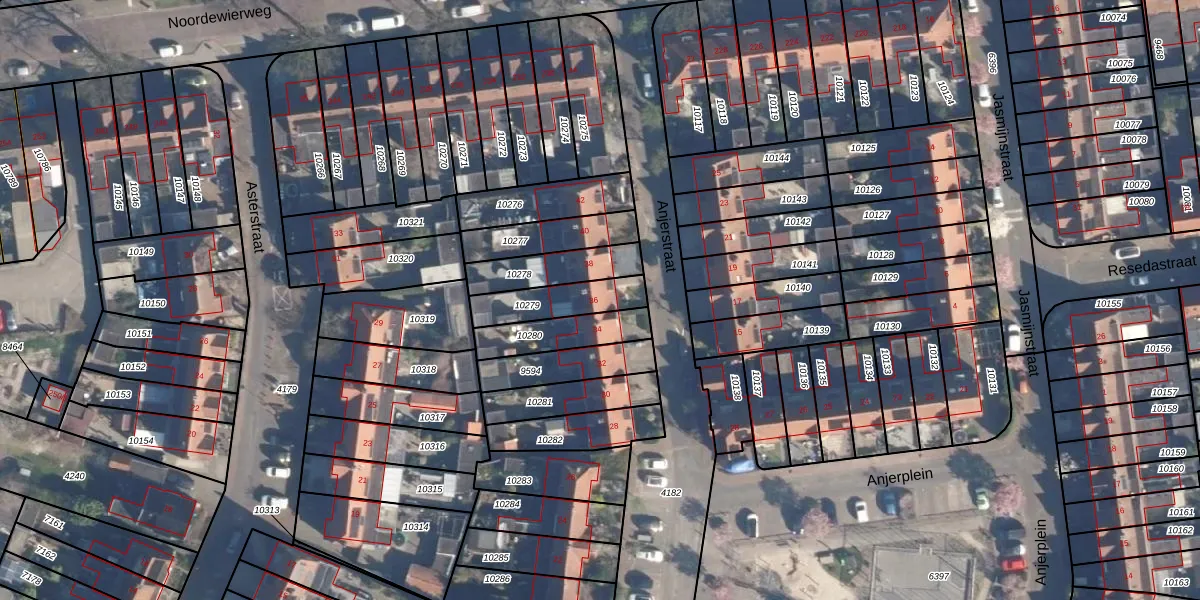 Gebruik de zoekbalk of klik op een perceel voor informatie over de adressen binnen dit perceel.