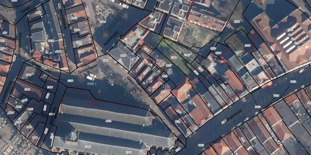 Het perceel waarop Appelmarkt 13-K staat heeft een oppervlakte van 81 m². Dit is een klein perceel. De perceeloppervlakte wordt geregistreerd door het Kadaster. Gedetailleerde informatie over de maten van dit perceel kunt u vinden in het rapport Kadastrale kaart met maatvoering van Appelmarkt 13-K.