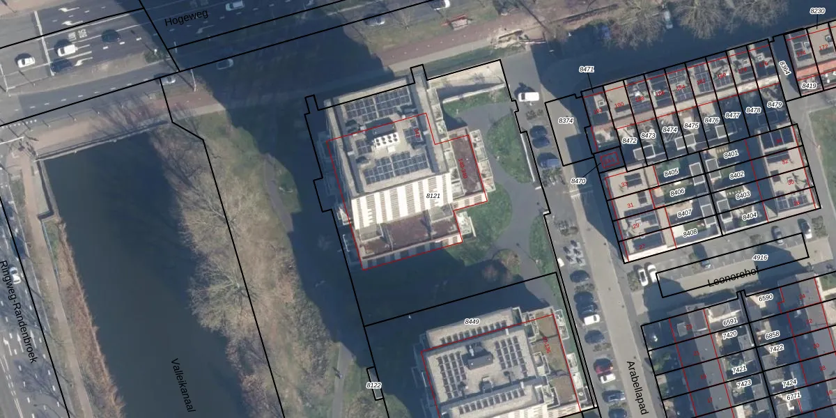 Arabellapad 202 is gelegen op kadastraal perceel AMF00A8121. Deze kadastrale aanduiding is uniek en wordt gebruikt door het Kadaster om eigendomsrechten en andere zakelijke rechten vast te leggen. Het perceel maakt onderdeel uit van de kadastrale gemeente Amersfoort.