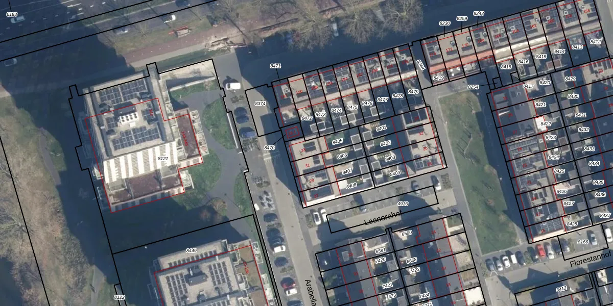 Arabellapad 33 is gelegen op kadastraal perceel AMF00A8405. Deze kadastrale aanduiding is uniek en wordt gebruikt door het Kadaster om eigendomsrechten en andere zakelijke rechten vast te leggen. Het perceel maakt onderdeel uit van de kadastrale gemeente Amersfoort.