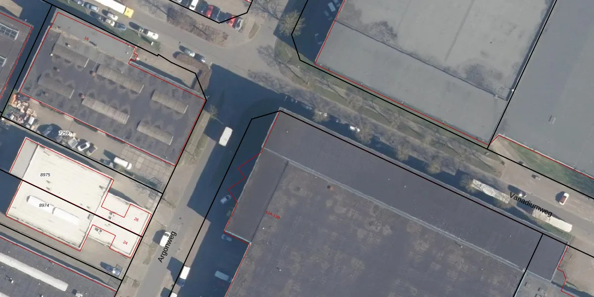 Het perceel waarop Argonweg 13-B staat heeft een oppervlakte van 1,6 ha. Dit is een zeer groot perceel. De perceeloppervlakte wordt geregistreerd door het Kadaster. Gedetailleerde informatie over de maten van dit perceel kunt u vinden in het rapport Kadastrale kaart met maatvoering van Argonweg 13-B.