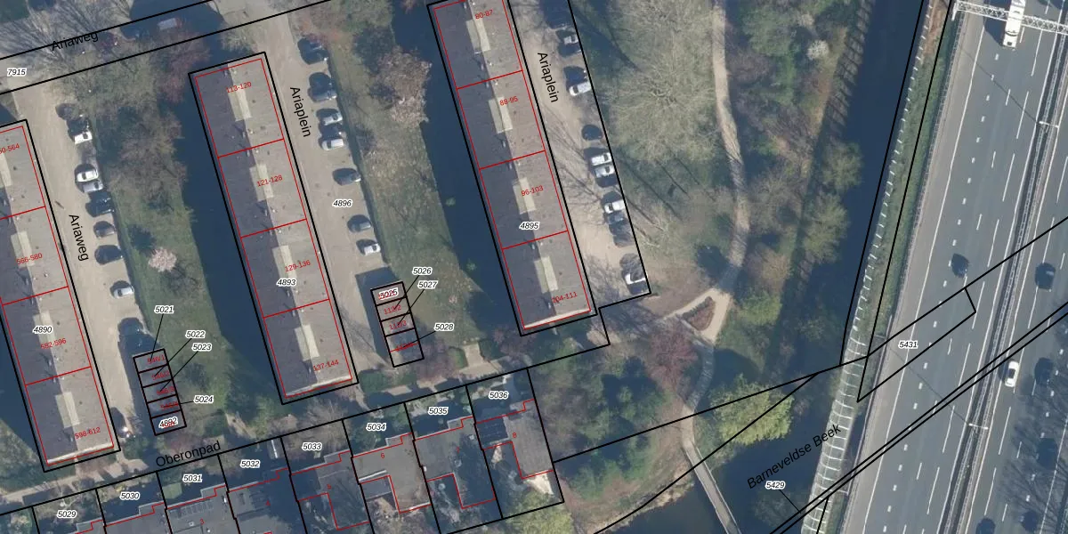 Het perceel waarop Ariaplein 108 staat heeft een oppervlakte van 955 m². Dit is een groot perceel. De perceeloppervlakte wordt geregistreerd door het Kadaster. Gedetailleerde informatie over de maten van dit perceel kunt u vinden in het rapport Kadastrale kaart met maatvoering van Ariaplein 108.