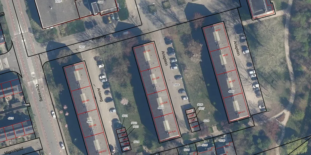 Het perceel waarop Ariaplein 121 staat heeft een oppervlakte van 957 m². Dit is een groot perceel. De perceeloppervlakte wordt geregistreerd door het Kadaster. Gedetailleerde informatie over de maten van dit perceel kunt u vinden in het rapport Kadastrale kaart met maatvoering van Ariaplein 121.