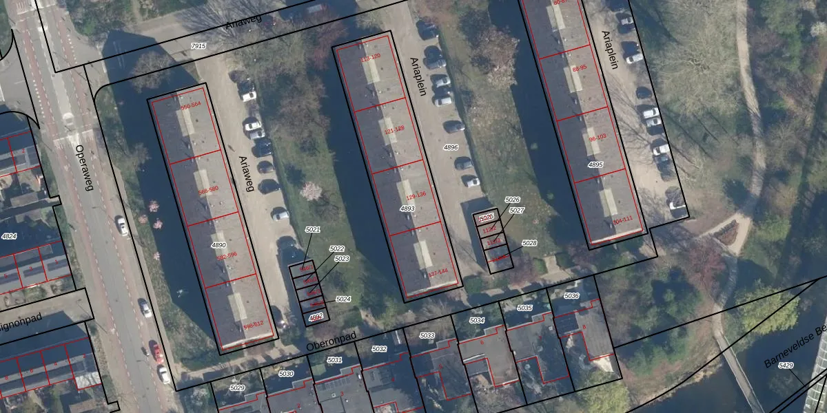 Het perceel waarop Ariaplein 135 staat heeft een oppervlakte van 957 m². Dit is een groot perceel. De perceeloppervlakte wordt geregistreerd door het Kadaster. Gedetailleerde informatie over de maten van dit perceel kunt u vinden in het rapport Kadastrale kaart met maatvoering van Ariaplein 135.