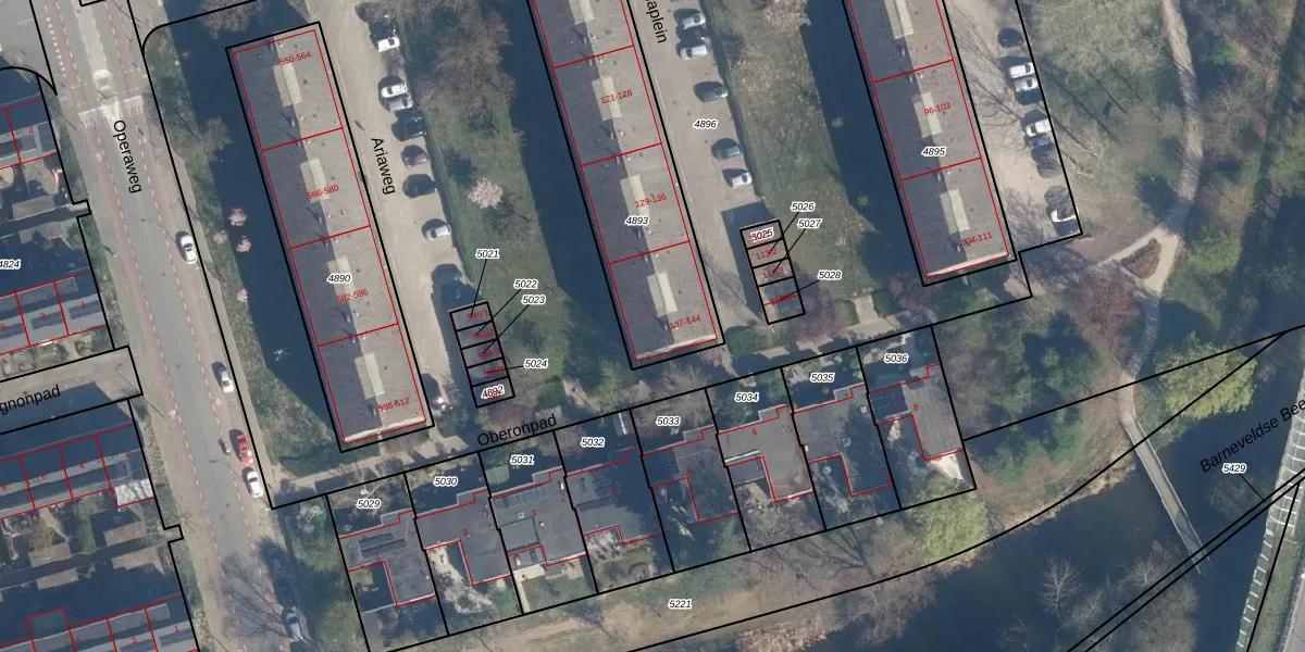 Het perceel waarop Ariaplein 144 staat heeft een oppervlakte van 957 m². Dit is een groot perceel. De perceeloppervlakte wordt geregistreerd door het Kadaster. Gedetailleerde informatie over de maten van dit perceel kunt u vinden in het rapport Kadastrale kaart met maatvoering van Ariaplein 144.