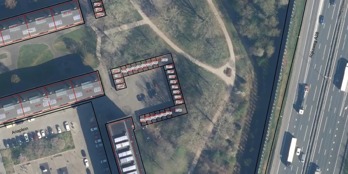 Ariaplein 33-17 is gelegen op kadastraal perceel AMF00A7771. Deze kadastrale aanduiding is uniek en wordt gebruikt door het Kadaster om eigendomsrechten en andere zakelijke rechten vast te leggen. Het perceel maakt onderdeel uit van de kadastrale gemeente Amersfoort.