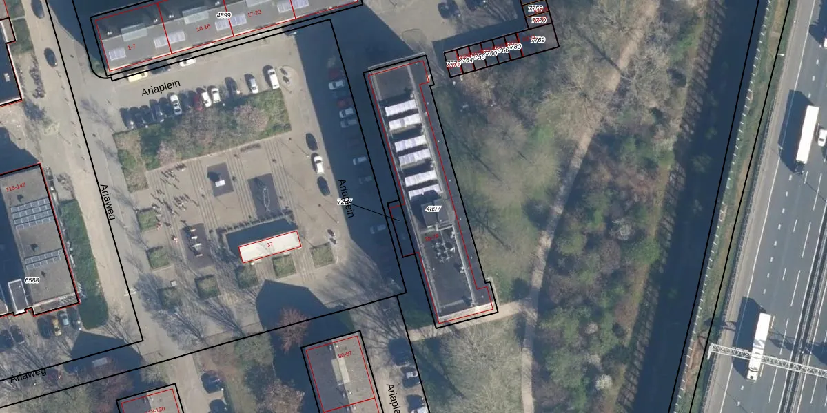 Het perceel waarop Ariaplein 42 staat heeft een oppervlakte van 959 m². Dit is een groot perceel. De perceeloppervlakte wordt geregistreerd door het Kadaster. Gedetailleerde informatie over de maten van dit perceel kunt u vinden in het rapport Kadastrale kaart met maatvoering van Ariaplein 42.