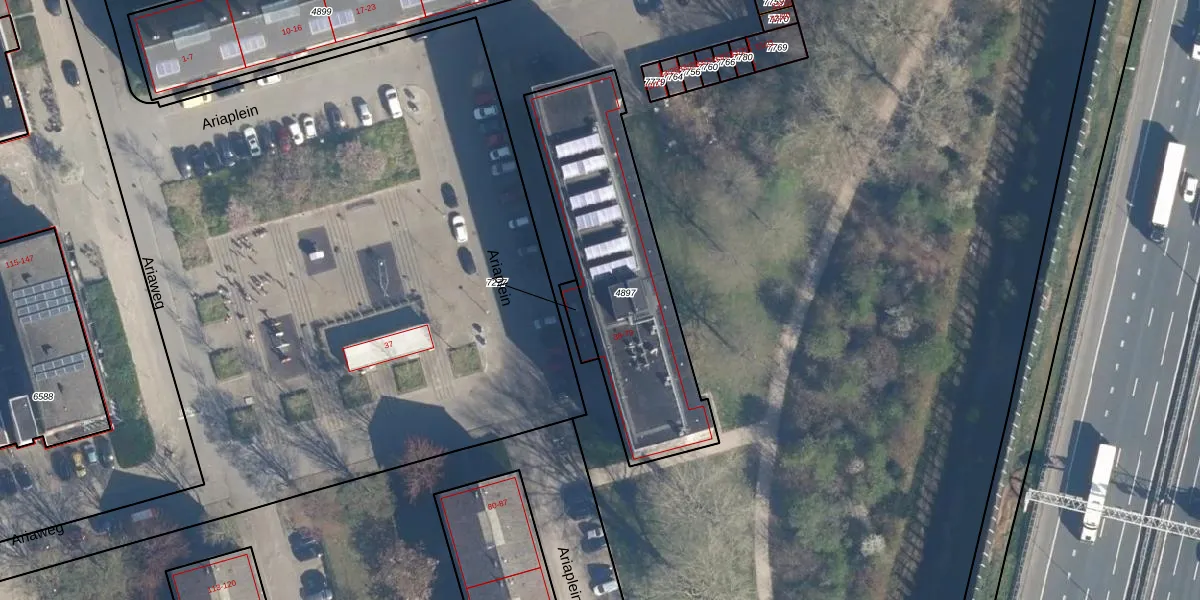 Het perceel waarop Ariaplein 44 staat heeft een oppervlakte van 959 m². Dit is een groot perceel. De perceeloppervlakte wordt geregistreerd door het Kadaster. Gedetailleerde informatie over de maten van dit perceel kunt u vinden in het rapport Kadastrale kaart met maatvoering van Ariaplein 44.