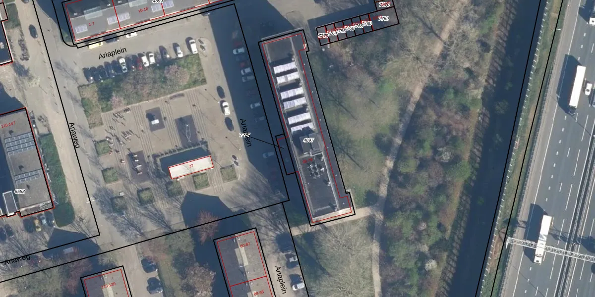 Het perceel waarop Ariaplein 46 staat heeft een oppervlakte van 959 m². Dit is een groot perceel. De perceeloppervlakte wordt geregistreerd door het Kadaster. Gedetailleerde informatie over de maten van dit perceel kunt u vinden in het rapport Kadastrale kaart met maatvoering van Ariaplein 46.