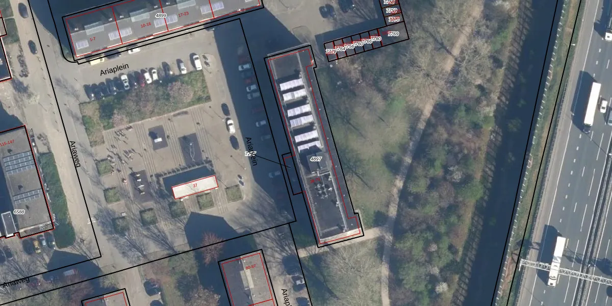 Het perceel waarop Ariaplein 51 staat heeft een oppervlakte van 959 m². Dit is een groot perceel. De perceeloppervlakte wordt geregistreerd door het Kadaster. Gedetailleerde informatie over de maten van dit perceel kunt u vinden in het rapport Kadastrale kaart met maatvoering van Ariaplein 51.