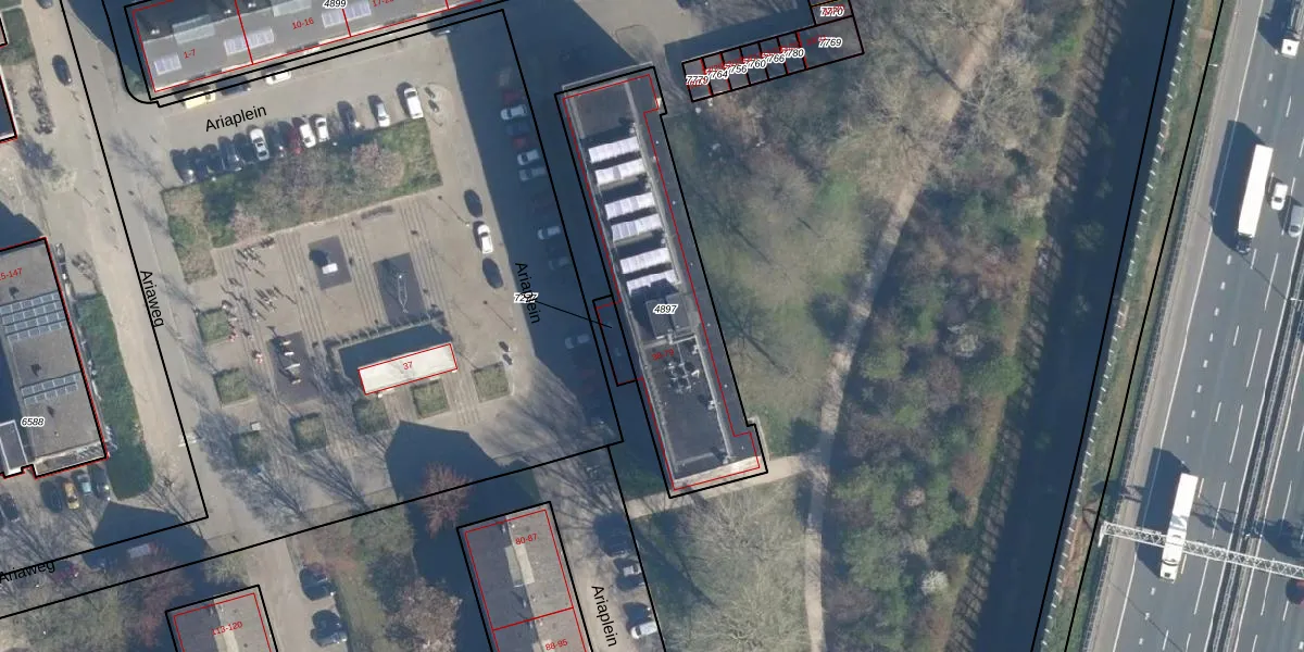 Het perceel waarop Ariaplein 55 staat heeft een oppervlakte van 959 m². Dit is een groot perceel. De perceeloppervlakte wordt geregistreerd door het Kadaster. Gedetailleerde informatie over de maten van dit perceel kunt u vinden in het rapport Kadastrale kaart met maatvoering van Ariaplein 55.