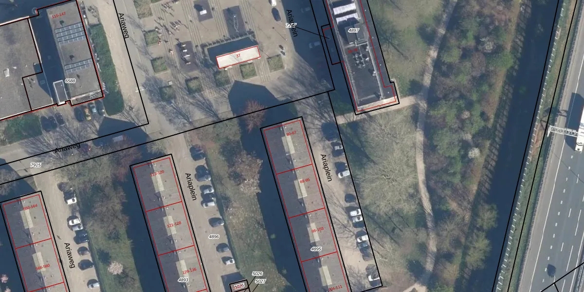 Het perceel waarop Ariaplein 81 staat heeft een oppervlakte van 955 m². Dit is een groot perceel. De perceeloppervlakte wordt geregistreerd door het Kadaster. Gedetailleerde informatie over de maten van dit perceel kunt u vinden in het rapport Kadastrale kaart met maatvoering van Ariaplein 81.