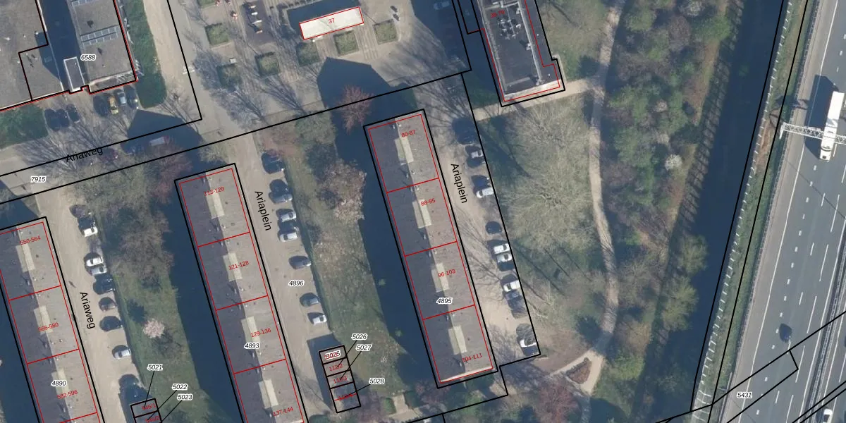 Het perceel waarop Ariaplein 89 staat heeft een oppervlakte van 955 m². Dit is een groot perceel. De perceeloppervlakte wordt geregistreerd door het Kadaster. Gedetailleerde informatie over de maten van dit perceel kunt u vinden in het rapport Kadastrale kaart met maatvoering van Ariaplein 89.