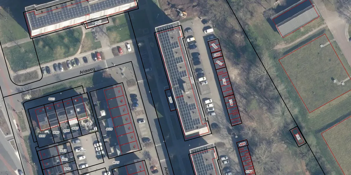 Het perceel waarop Ariaweg 112 staat heeft een oppervlakte van 959 m². Dit is een groot perceel. De perceeloppervlakte wordt geregistreerd door het Kadaster. Gedetailleerde informatie over de maten van dit perceel kunt u vinden in het rapport Kadastrale kaart met maatvoering van Ariaweg 112.