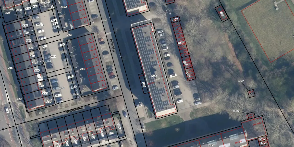 Het perceel waarop Ariaweg 206 staat heeft een oppervlakte van 959 m². Dit is een groot perceel. De perceeloppervlakte wordt geregistreerd door het Kadaster. Gedetailleerde informatie over de maten van dit perceel kunt u vinden in het rapport Kadastrale kaart met maatvoering van Ariaweg 206.