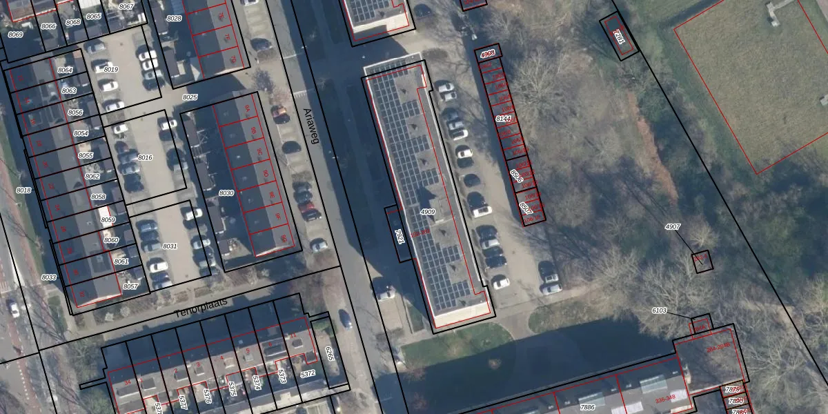 Het perceel waarop Ariaweg 248 staat heeft een oppervlakte van 959 m². Dit is een groot perceel. De perceeloppervlakte wordt geregistreerd door het Kadaster. Gedetailleerde informatie over de maten van dit perceel kunt u vinden in het rapport Kadastrale kaart met maatvoering van Ariaweg 248.