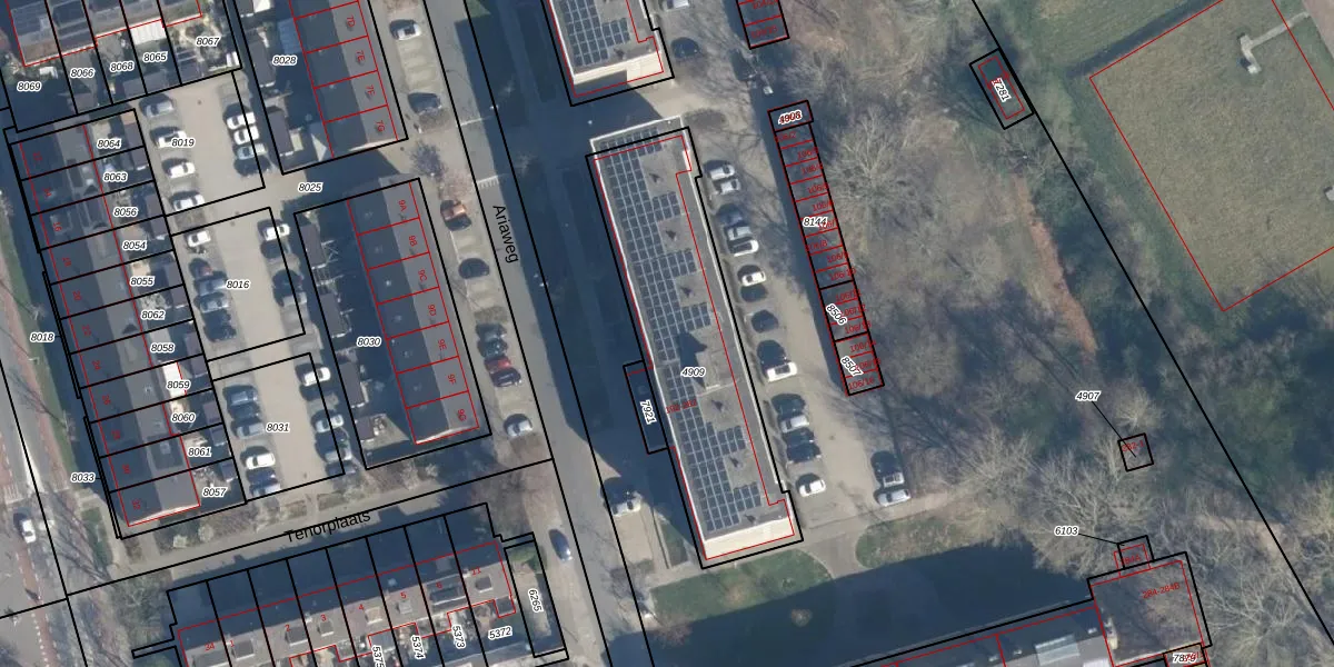 Het perceel waarop Ariaweg 258 staat heeft een oppervlakte van 959 m². Dit is een groot perceel. De perceeloppervlakte wordt geregistreerd door het Kadaster. Gedetailleerde informatie over de maten van dit perceel kunt u vinden in het rapport Kadastrale kaart met maatvoering van Ariaweg 258.