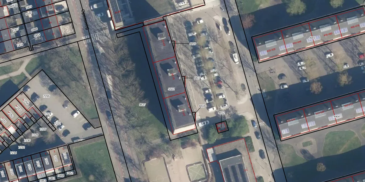 Het adres is gelegen op perceel 5561 in de sectie A en de kadastrale gemeente Amersfoort. De kadastrale aanduiding is aldus AMF00-A-5561. De gemiddelde perceeloppervlakte in de kadastrale gemeente Amersfoort is 959,94 m². Dit perceel is met zijn 1047 m² dus groter dan gemiddeld. De grootste perceeloppervlakte in de kadastrale gemeente is 1,12 km². De kleinste oppervlakte bedraagt 0 m². Op het perceel zijn 48 adressen aanwezig. In de Basisregistratie Kadaster (BRK) werden de grenzen van het perceel geregistreerd op 12-03-2025.