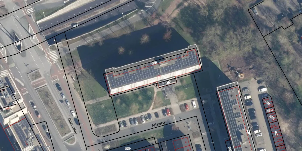 Het perceel waarop Ariaweg 54 staat heeft een oppervlakte van 960 m². Dit is een groot perceel. De perceeloppervlakte wordt geregistreerd door het Kadaster. Gedetailleerde informatie over de maten van dit perceel kunt u vinden in het rapport Kadastrale kaart met maatvoering van Ariaweg 54.