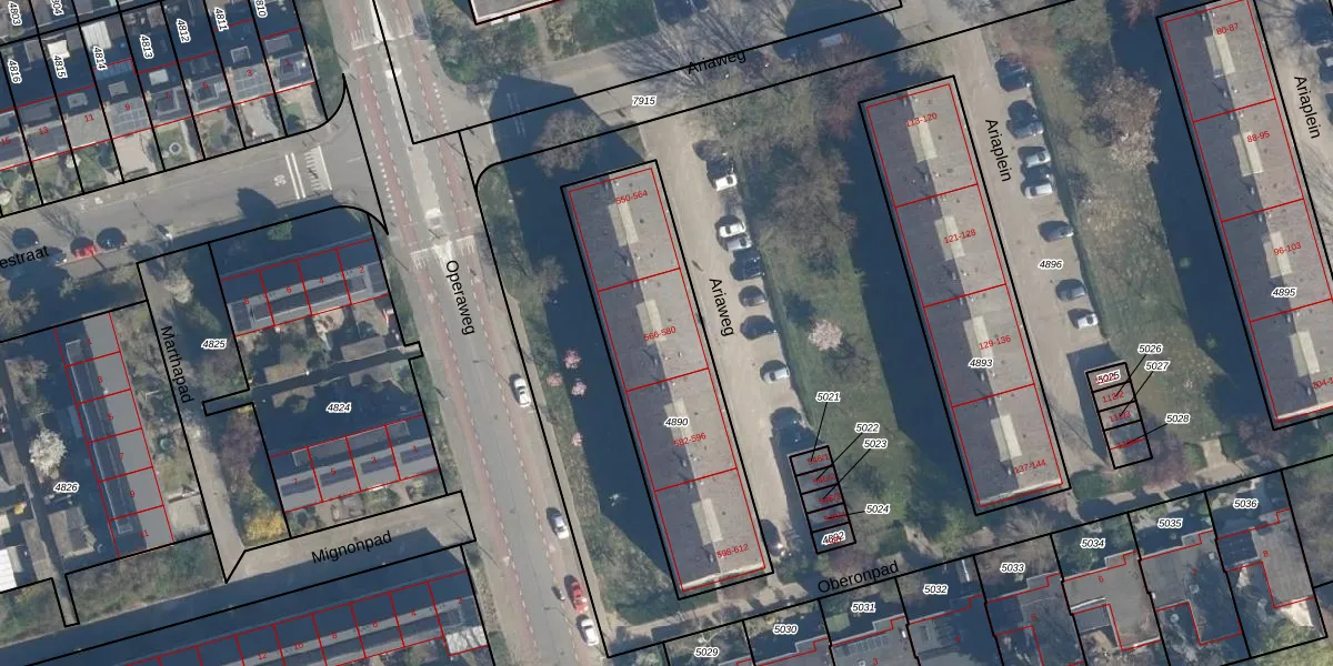 Het perceel waarop Ariaweg 580 staat heeft een oppervlakte van 957 m². Dit is een groot perceel. De perceeloppervlakte wordt geregistreerd door het Kadaster. Gedetailleerde informatie over de maten van dit perceel kunt u vinden in het rapport Kadastrale kaart met maatvoering van Ariaweg 580.