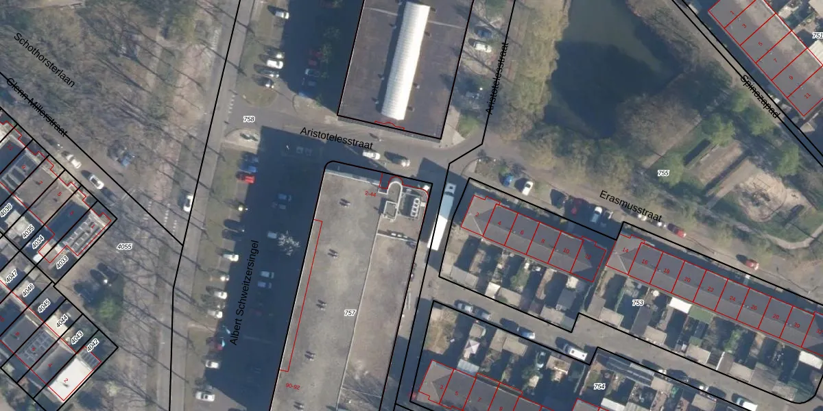 Het perceel waarop Aristotelesstraat 32 staat heeft een oppervlakte van 1755 m². Dit is een zeer groot perceel. De perceeloppervlakte wordt geregistreerd door het Kadaster. Gedetailleerde informatie over de maten van dit perceel kunt u vinden in het rapport Kadastrale kaart met maatvoering van Aristotelesstraat 32.
