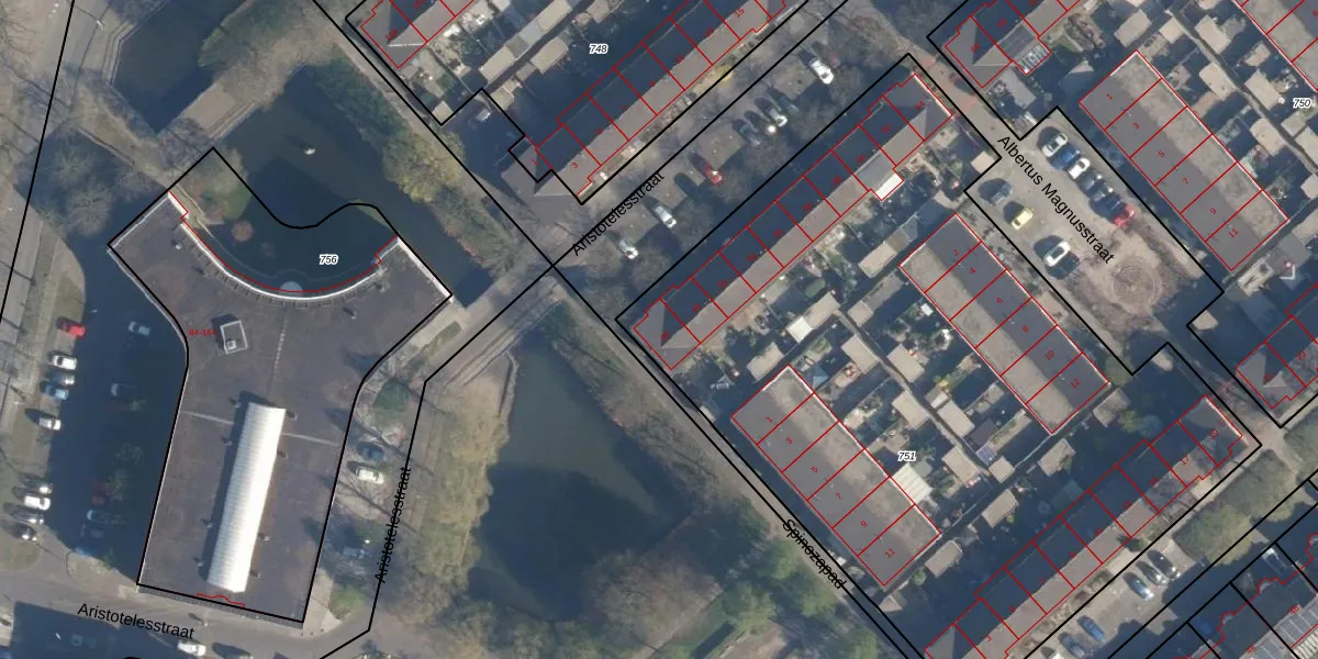 Het perceel waarop Aristotelesstraat 46 staat heeft een oppervlakte van 4495 m². Dit is een zeer groot perceel. De perceeloppervlakte wordt geregistreerd door het Kadaster. Gedetailleerde informatie over de maten van dit perceel kunt u vinden in het rapport Kadastrale kaart met maatvoering van Aristotelesstraat 46.