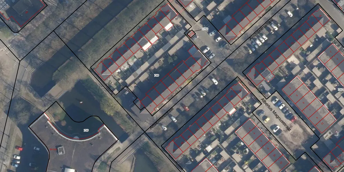 Aristotelesstraat 9 is gelegen op kadastraal perceel AMF00N748. Deze kadastrale aanduiding is uniek en wordt gebruikt door het Kadaster om eigendomsrechten en andere zakelijke rechten vast te leggen. Het perceel maakt onderdeel uit van de kadastrale gemeente Amersfoort.