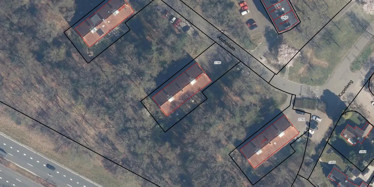 Het perceel waarop Arubalaan 32-B staat heeft een oppervlakte van 1004 m². Dit is een zeer groot perceel. De perceeloppervlakte wordt geregistreerd door het Kadaster. Gedetailleerde informatie over de maten van dit perceel kunt u vinden in het rapport Kadastrale kaart met maatvoering van Arubalaan 32-B.