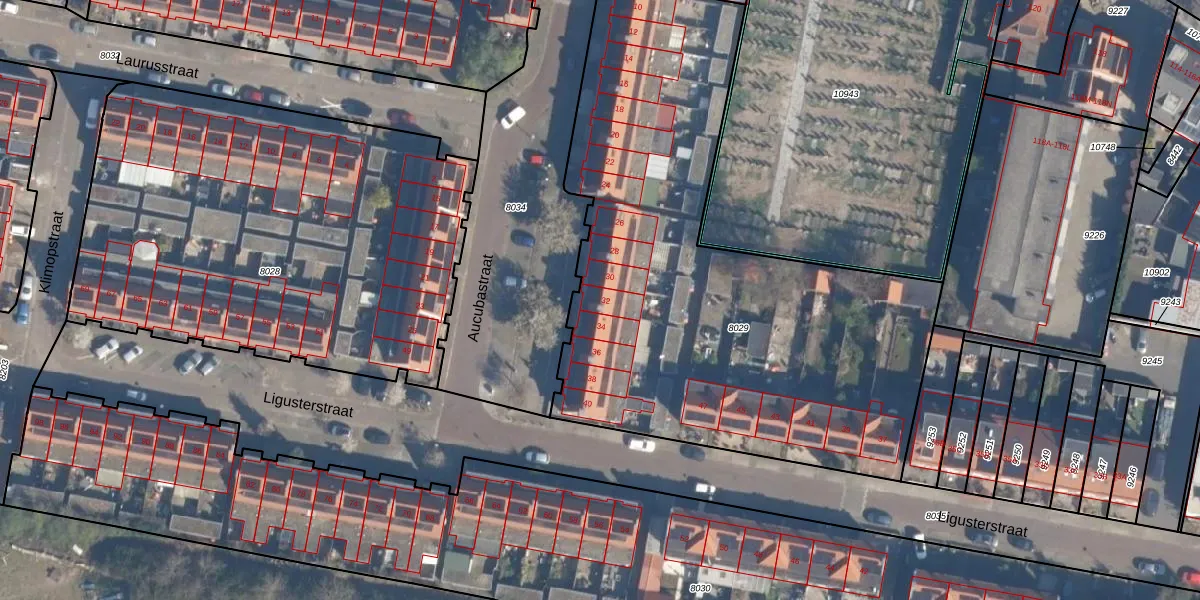 Het perceel waarop Aucubastraat 32 staat heeft een oppervlakte van 2975 m². Dit is een zeer groot perceel. De perceeloppervlakte wordt geregistreerd door het Kadaster. Gedetailleerde informatie over de maten van dit perceel kunt u vinden in het rapport Kadastrale kaart met maatvoering van Aucubastraat 32.