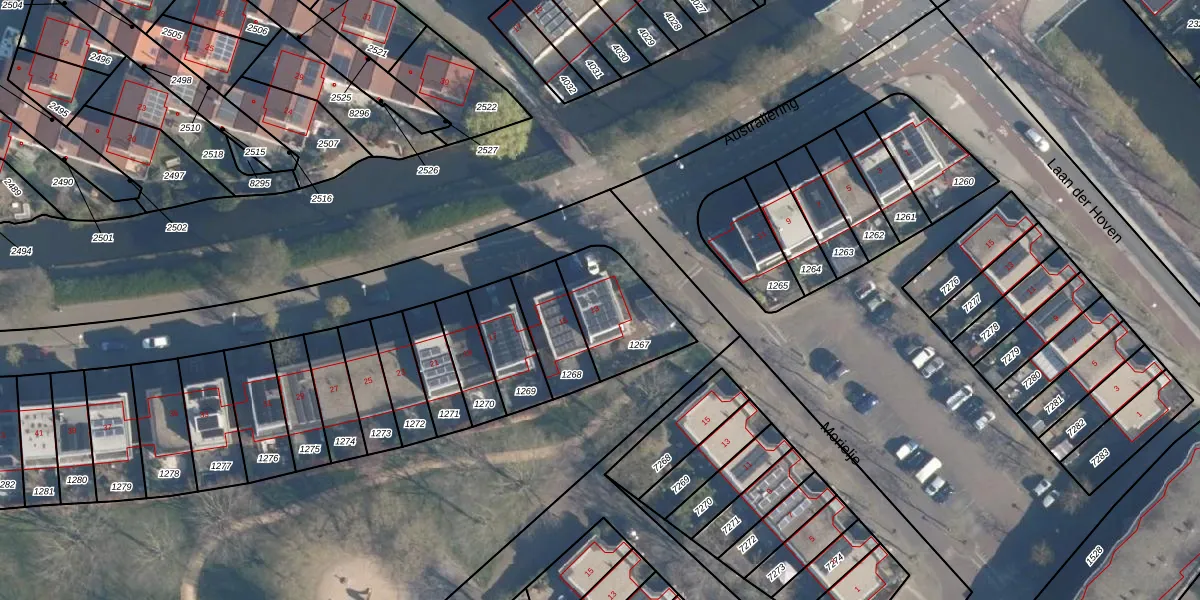 Het perceel waarop Australiëring 13 staat heeft een oppervlakte van 300 m². Dit is een groot perceel. De perceeloppervlakte wordt geregistreerd door het Kadaster. Gedetailleerde informatie over de maten van dit perceel kunt u vinden in het rapport Kadastrale kaart met maatvoering van Australiëring 13.