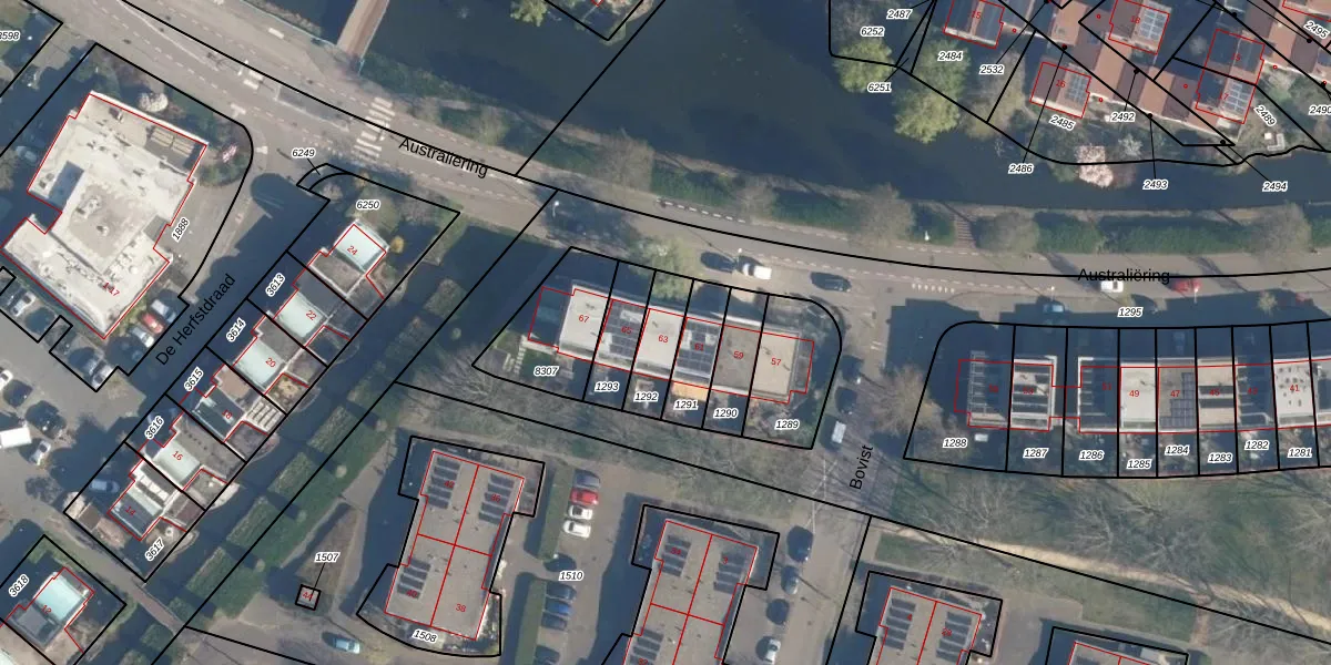 Het perceel waarop Australiëring 63 staat heeft een oppervlakte van 128 m². Dit is een middelgroot perceel. De perceeloppervlakte wordt geregistreerd door het Kadaster. Gedetailleerde informatie over de maten van dit perceel kunt u vinden in het rapport Kadastrale kaart met maatvoering van Australiëring 63.