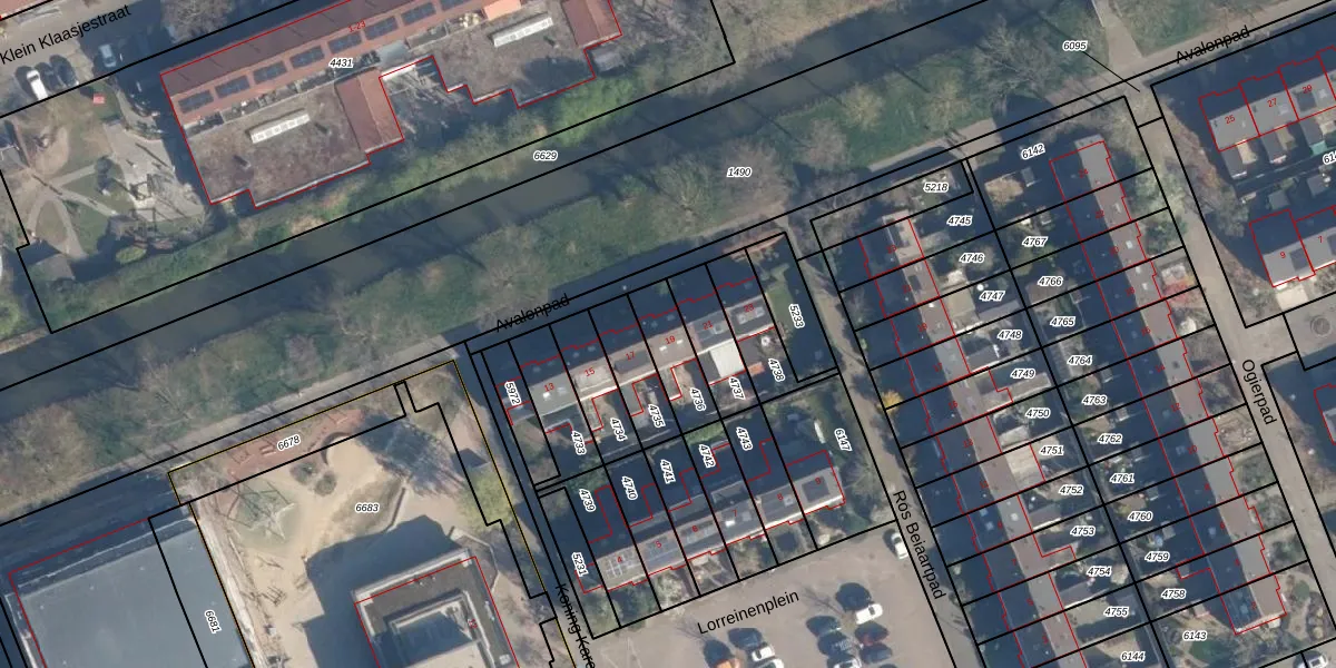 Gebruik de zoekbalk of klik op een perceel voor informatie over de adressen binnen dit perceel.
