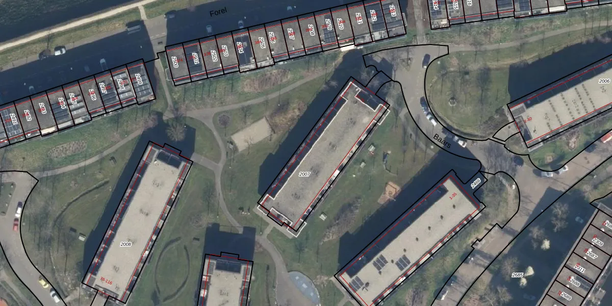 Het perceel waarop Baars 67 staat heeft een oppervlakte van 846 m². Dit is een groot perceel. De perceeloppervlakte wordt geregistreerd door het Kadaster. Gedetailleerde informatie over de maten van dit perceel kunt u vinden in het rapport Kadastrale kaart met maatvoering van Baars 67.