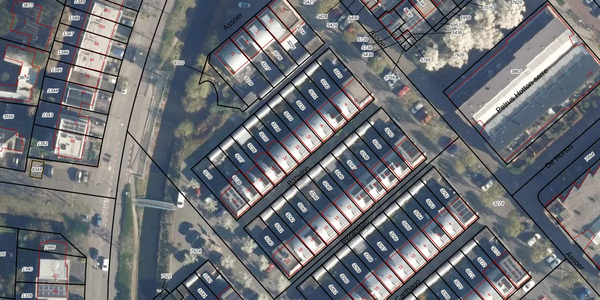 Het perceel waarop Babylon 12 staat heeft een oppervlakte van 123 m². Dit is een middelgroot perceel. De perceeloppervlakte wordt geregistreerd door het Kadaster. Gedetailleerde informatie over de maten van dit perceel kunt u vinden in het rapport Kadastrale kaart met maatvoering van Babylon 12.
