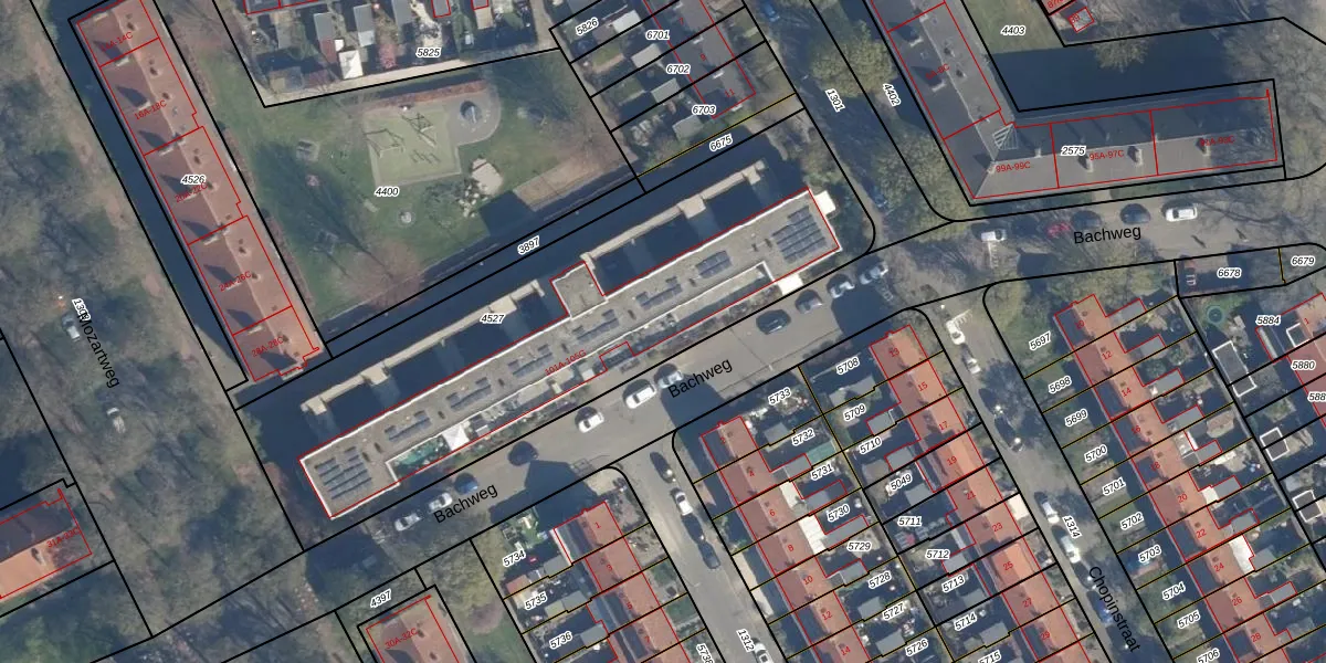 Bachweg 101-C is gelegen op kadastraal perceel AMF00G4527. Deze kadastrale aanduiding is uniek en wordt gebruikt door het Kadaster om eigendomsrechten en andere zakelijke rechten vast te leggen. Het perceel maakt onderdeel uit van de kadastrale gemeente Amersfoort.