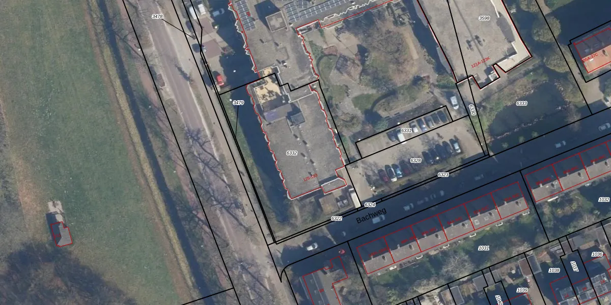 Bachweg 181 is gelegen op kadastraal perceel AMF00G6332. Deze kadastrale aanduiding is uniek en wordt gebruikt door het Kadaster om eigendomsrechten en andere zakelijke rechten vast te leggen. Het perceel maakt onderdeel uit van de kadastrale gemeente Amersfoort.