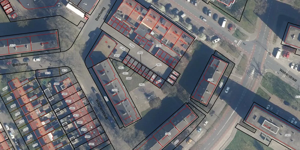 Bachweg 78-7 is gelegen op kadastraal perceel AMF00G2452. Deze kadastrale aanduiding is uniek en wordt gebruikt door het Kadaster om eigendomsrechten en andere zakelijke rechten vast te leggen. Het perceel maakt onderdeel uit van de kadastrale gemeente Amersfoort.
