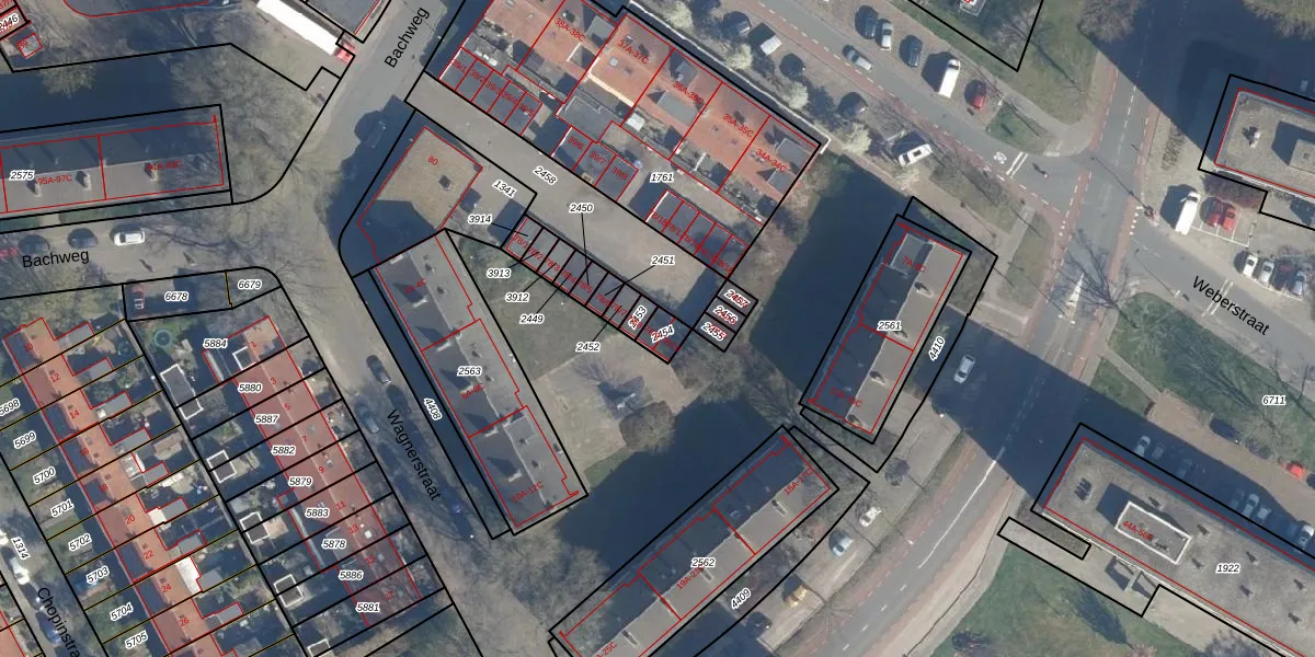Bachweg 78-9 is gelegen op kadastraal perceel AMF00G2454. Deze kadastrale aanduiding is uniek en wordt gebruikt door het Kadaster om eigendomsrechten en andere zakelijke rechten vast te leggen. Het perceel maakt onderdeel uit van de kadastrale gemeente Amersfoort.