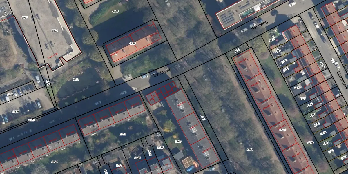 Het perceel waarop Bachweg 82-1 staat heeft een oppervlakte van 1299 m². Dit is een zeer groot perceel. De perceeloppervlakte wordt geregistreerd door het Kadaster. Gedetailleerde informatie over de maten van dit perceel kunt u vinden in het rapport Kadastrale kaart met maatvoering van Bachweg 82-1.