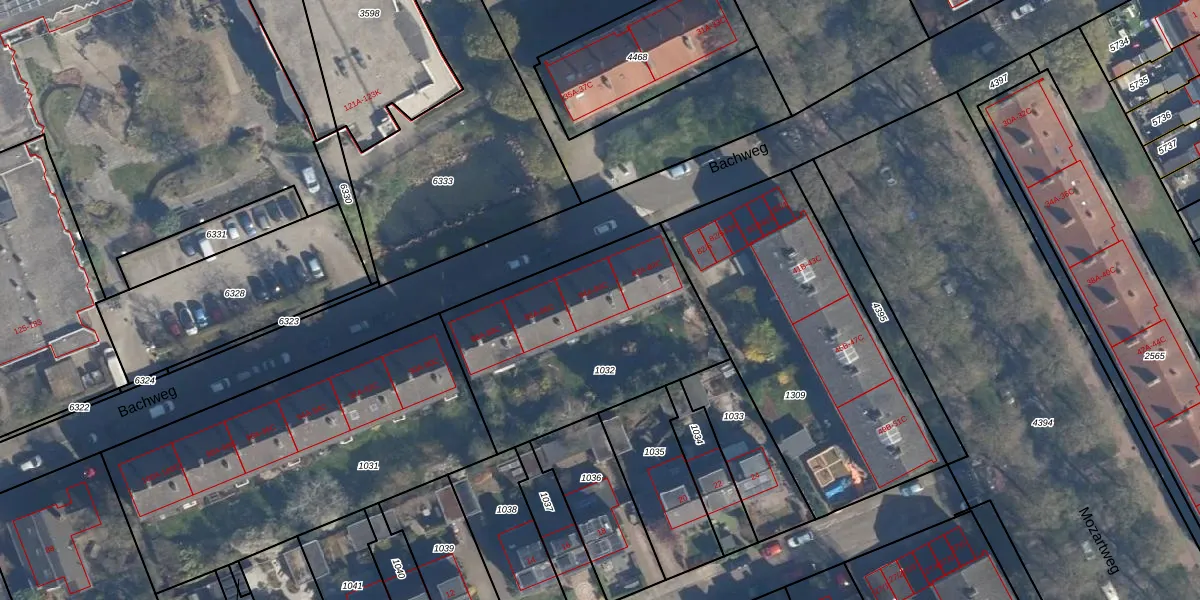 Het perceel waarop Bachweg 84-C staat heeft een oppervlakte van 1042 m². Dit is een zeer groot perceel. De perceeloppervlakte wordt geregistreerd door het Kadaster. Gedetailleerde informatie over de maten van dit perceel kunt u vinden in het rapport Kadastrale kaart met maatvoering van Bachweg 84-C.