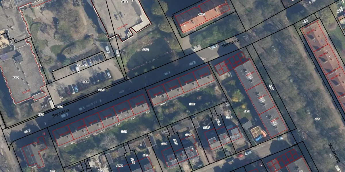 Het perceel waarop Bachweg 86-A staat heeft een oppervlakte van 1042 m². Dit is een zeer groot perceel. De perceeloppervlakte wordt geregistreerd door het Kadaster. Gedetailleerde informatie over de maten van dit perceel kunt u vinden in het rapport Kadastrale kaart met maatvoering van Bachweg 86-A.